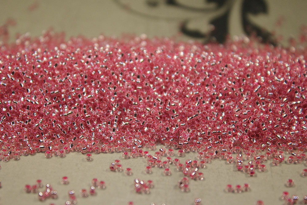 Размер 15/0 = 1.5 мм.  Самый мелкий из всех видов. Его можно   использовать в проектах, где необходима высокая детализация. Он хорошо   подходит как для вышивки, так и для плетения.