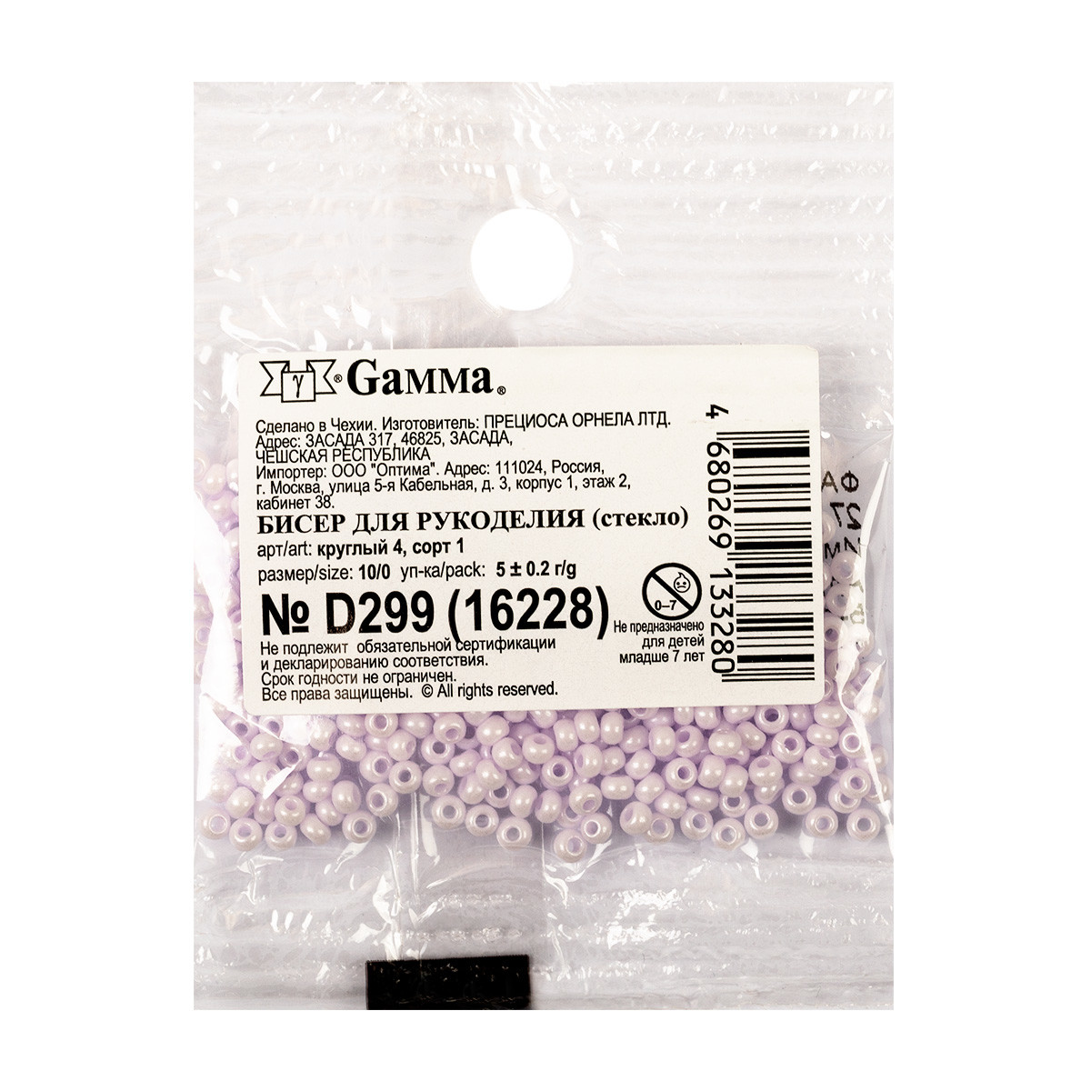 Бисер Чехия Preciosa круглый, фасовка 5 грамм. Первый сорт бисера. Фасовка Gamma