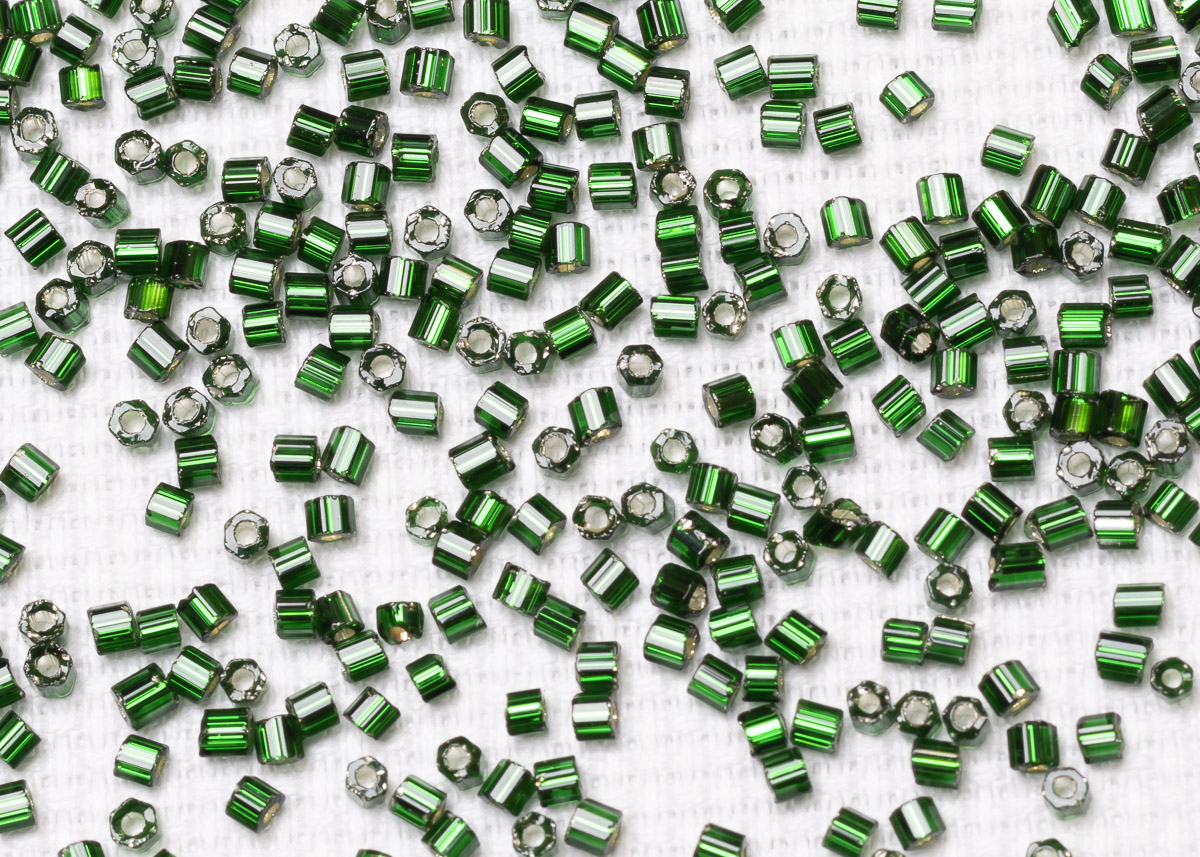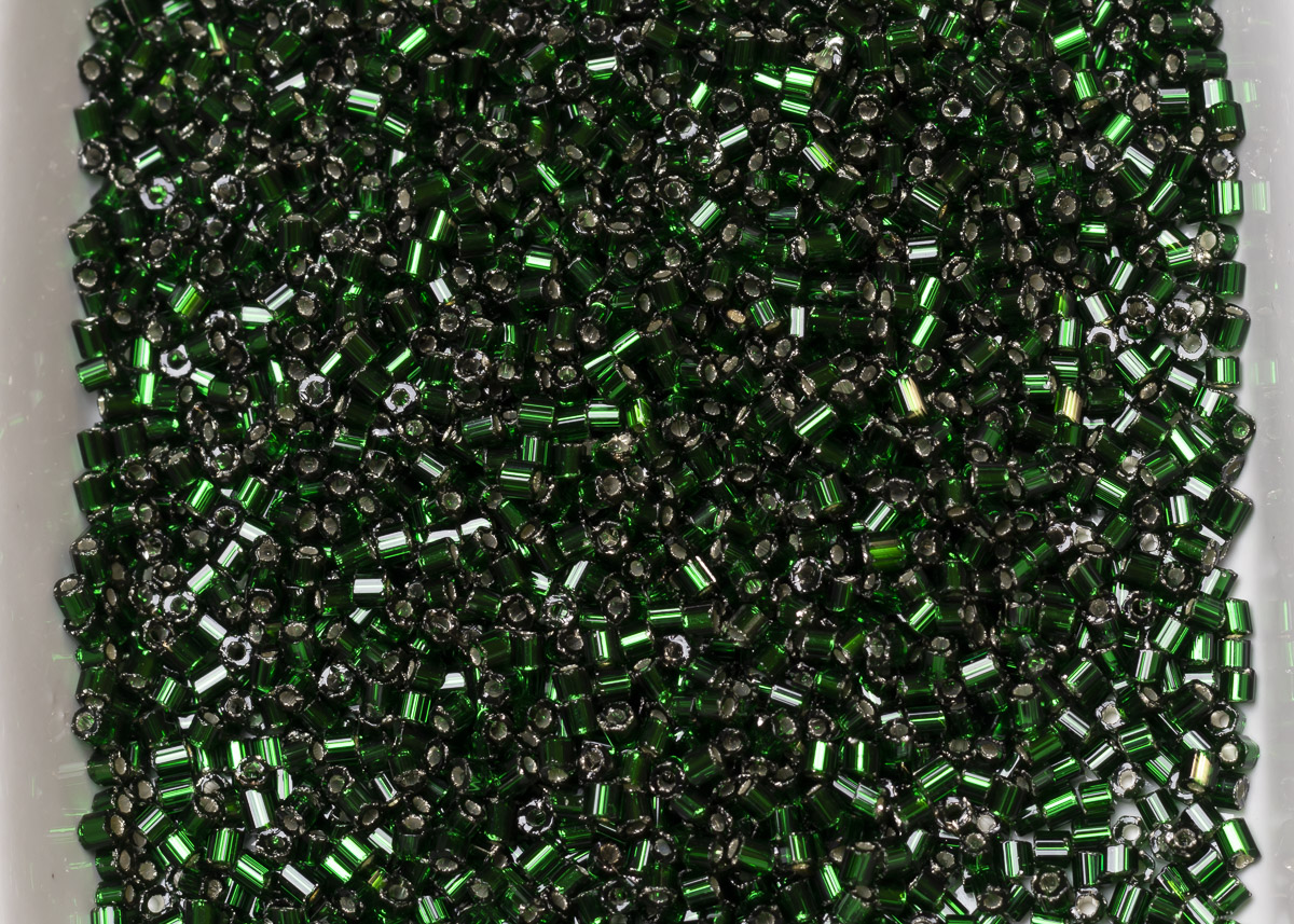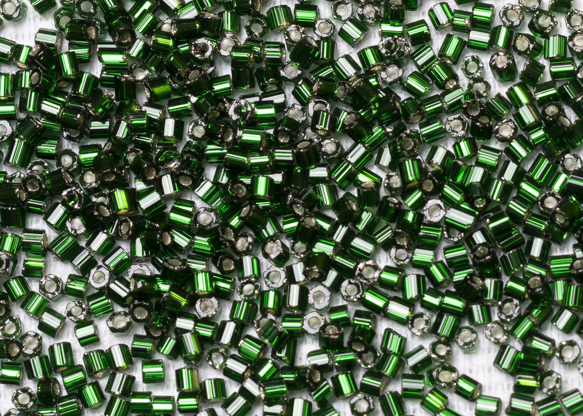 Бисер Чехия рубка 10/0 50г 57620 зеленый, серебряная линия внутри