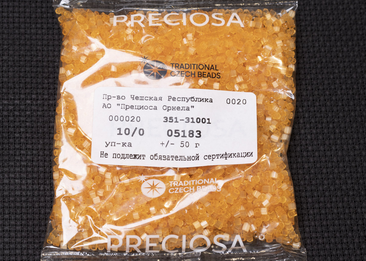 Бисер Чехия сатиновая рубка 10/0 50г 05183 оранжевый