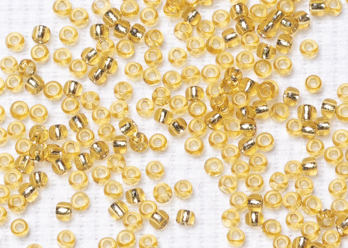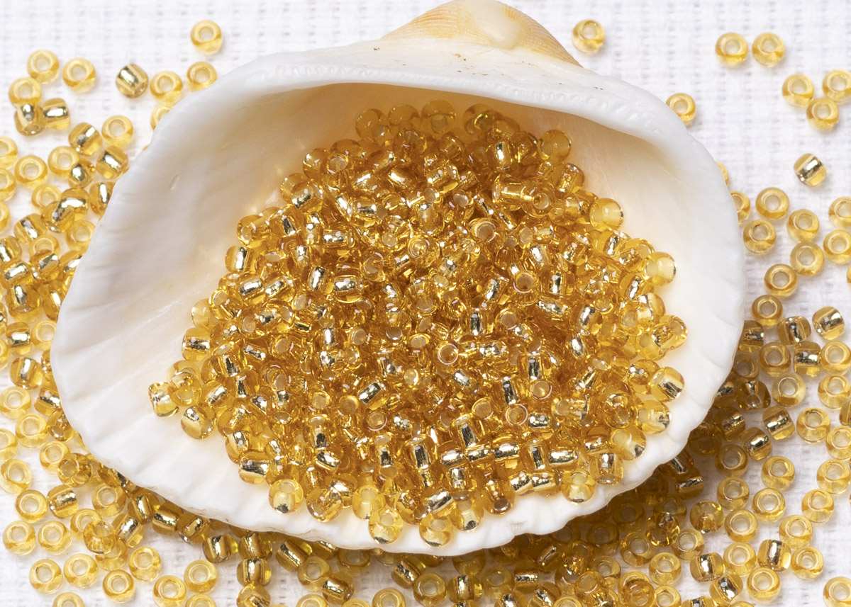 Бисер Япония круглый 11/0 10 г PF0022 гальванизированный, светлый топаз, серебряная линия внутри