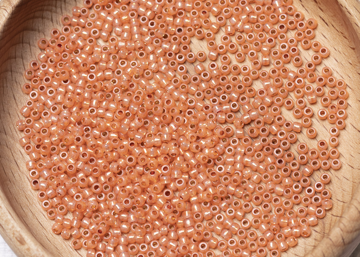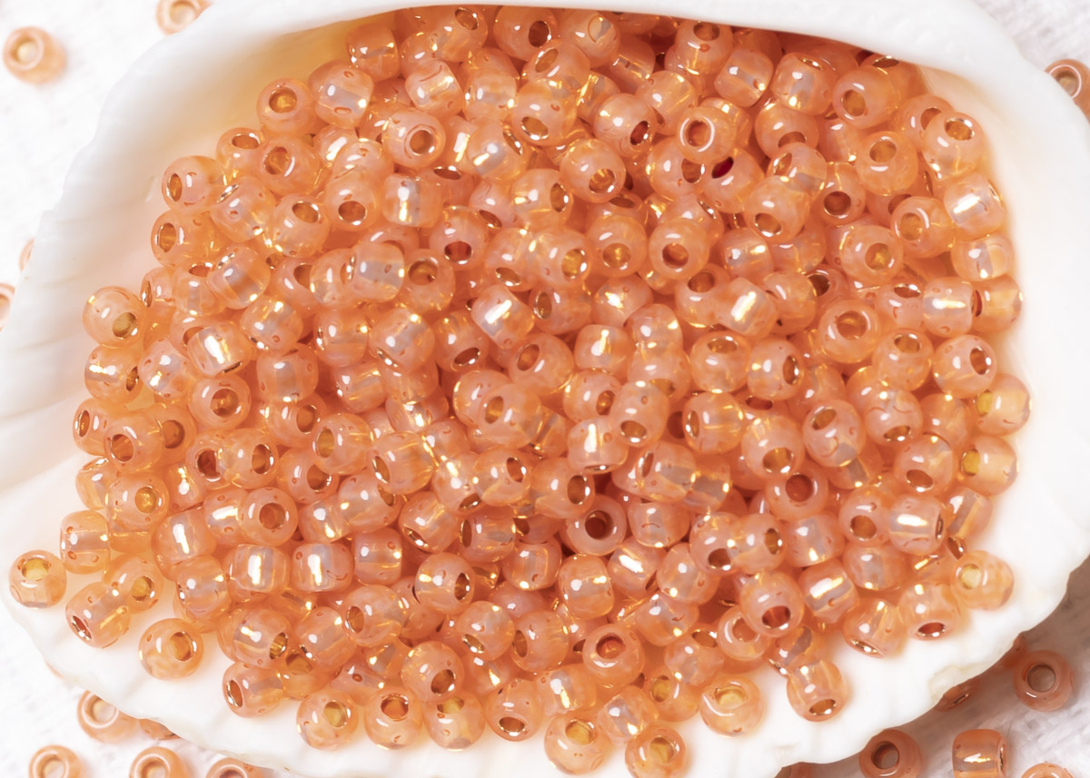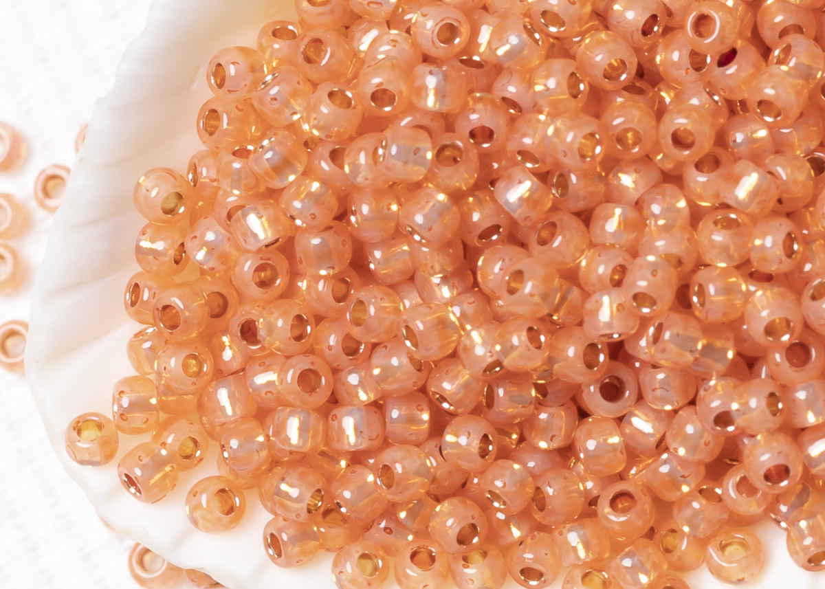 Бисер Япония круглый 11/0 10 г PF2112 молочный грейпфрут, серебряная линия внутри