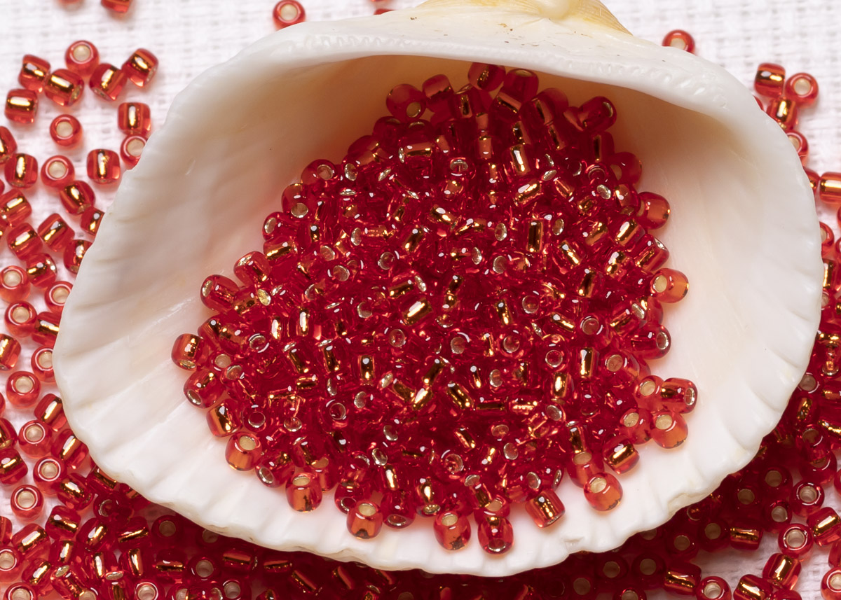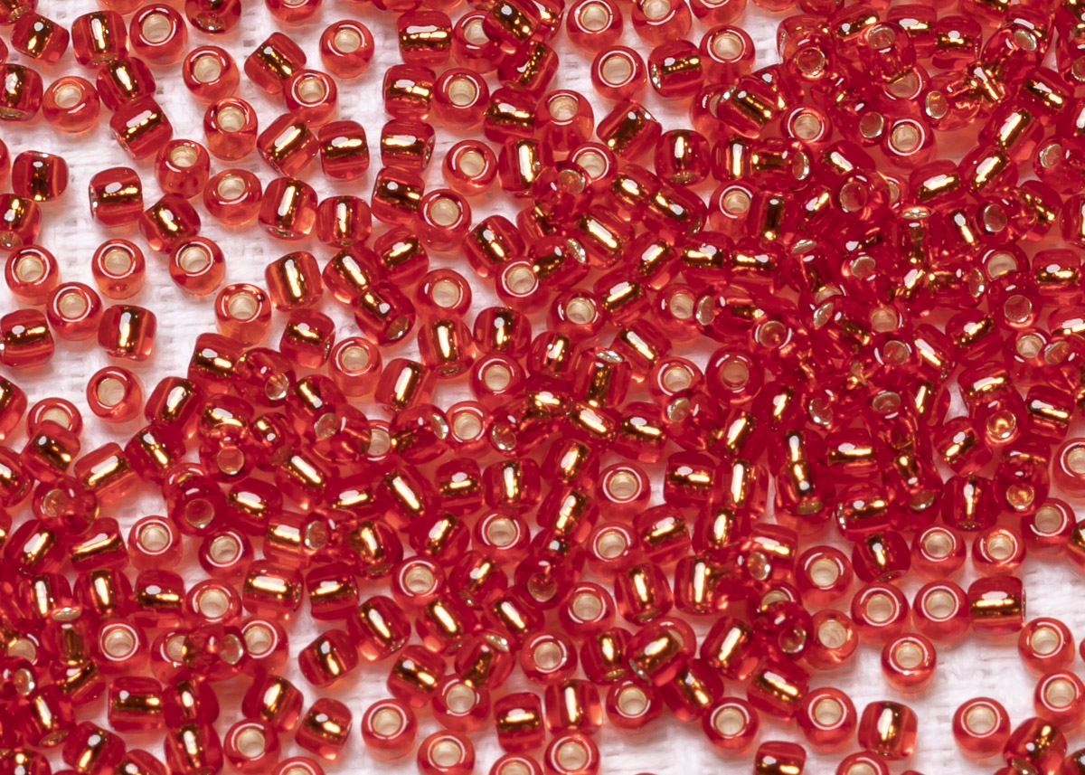 Бисер Япония круглый 11/0 10г 0025B Square/квадратное отверстие, сиамский рубин, серебряная линия внутри