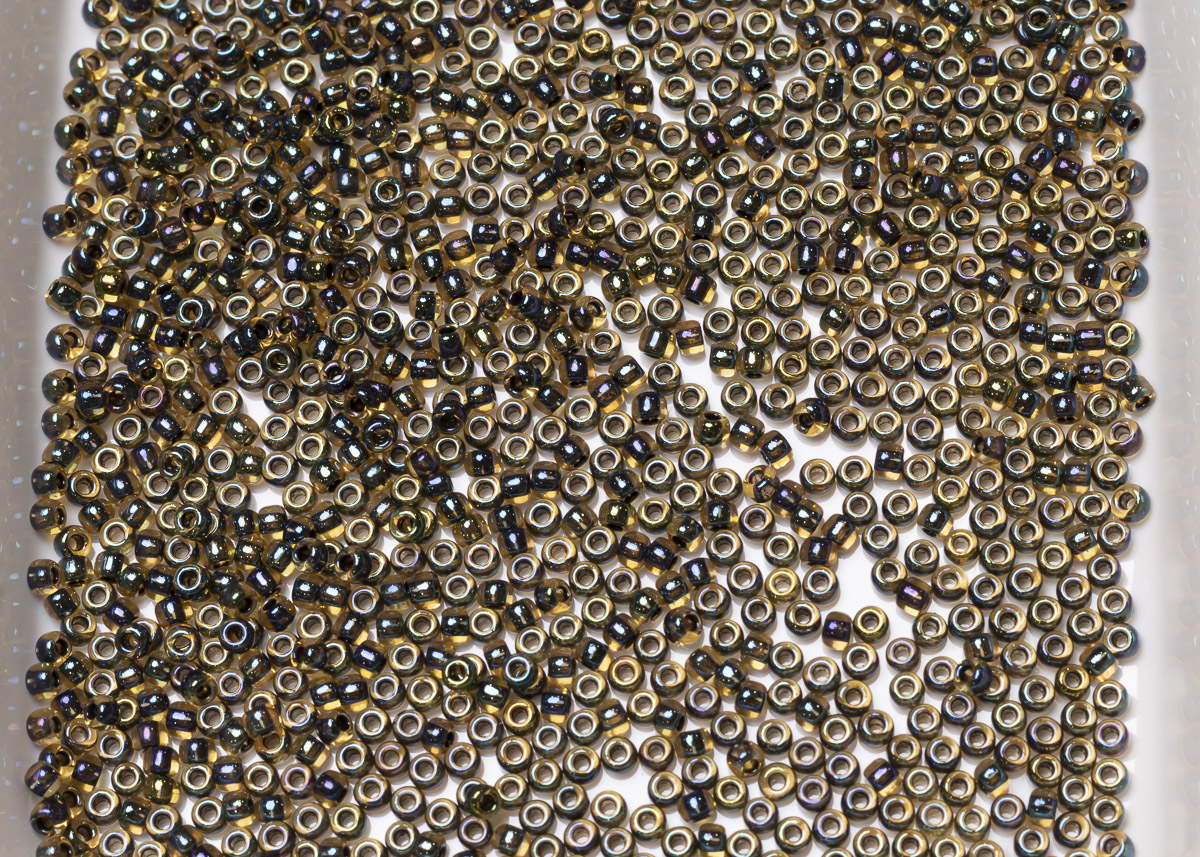 Бисер Япония круглый 11/0 10г 0244 светлый топаз/чёрный радужный, окрашенный изнутри