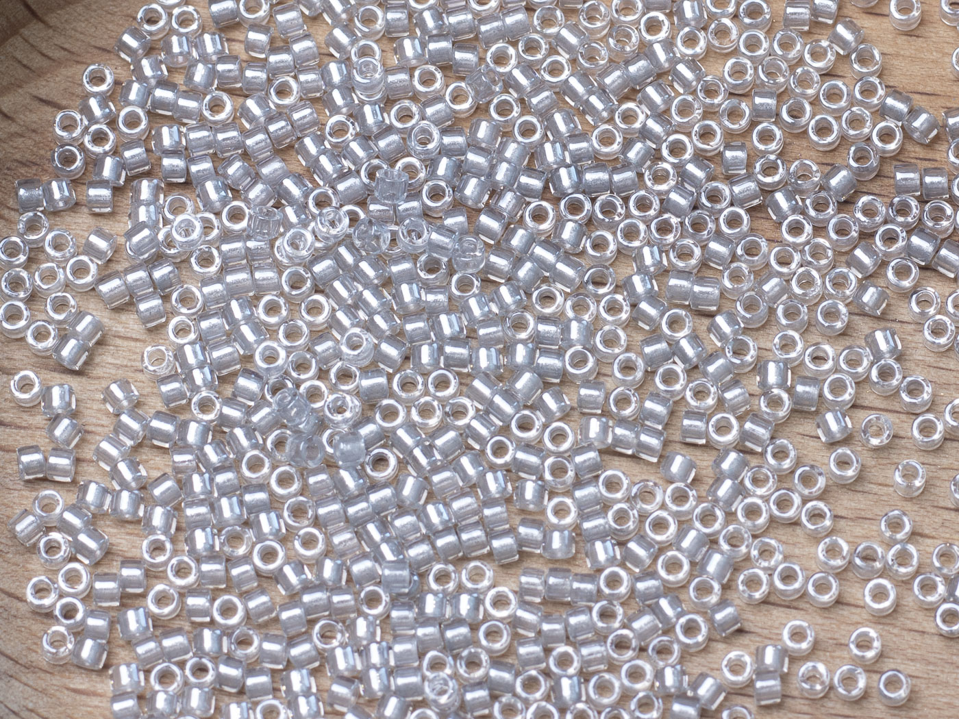 Бисер Япония MIYUKI Delica цилиндрический 11/0 5г DB-0271 сверкающее серебристо-серое с цветной линией кристалл