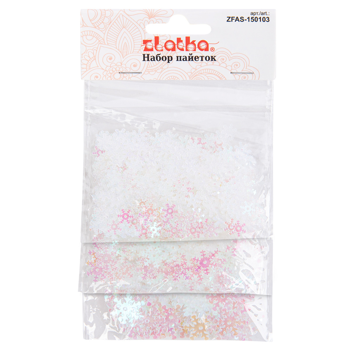 Пайетки " Zlatka" Набор пайеток ZFAS- 150103 7, 10, 13 мм 15 г №01 снежинки ( под перламутр, св. св. розовый)